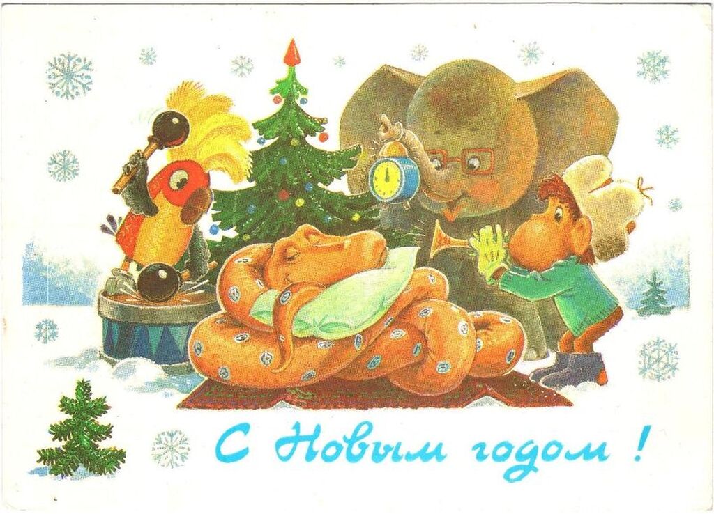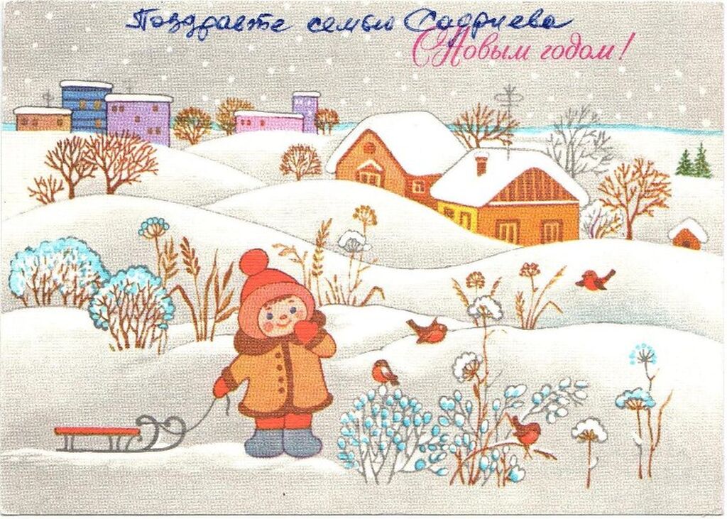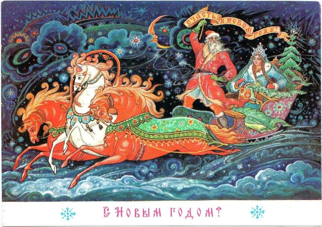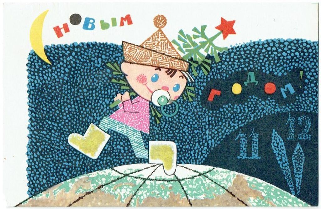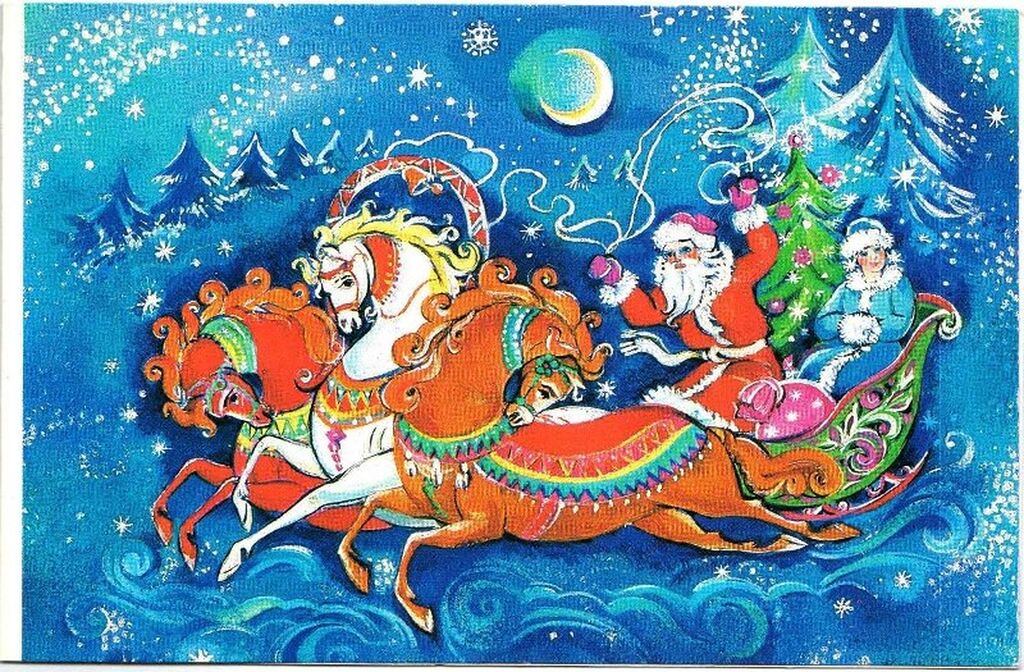 - 1960-70-е годы: Расцвет советской открытки. Популярность приобрели сказочные персонажи, такие как Дед Мороз и Снегурочка. На открытках стали появляться космонавты и космическая тематика.