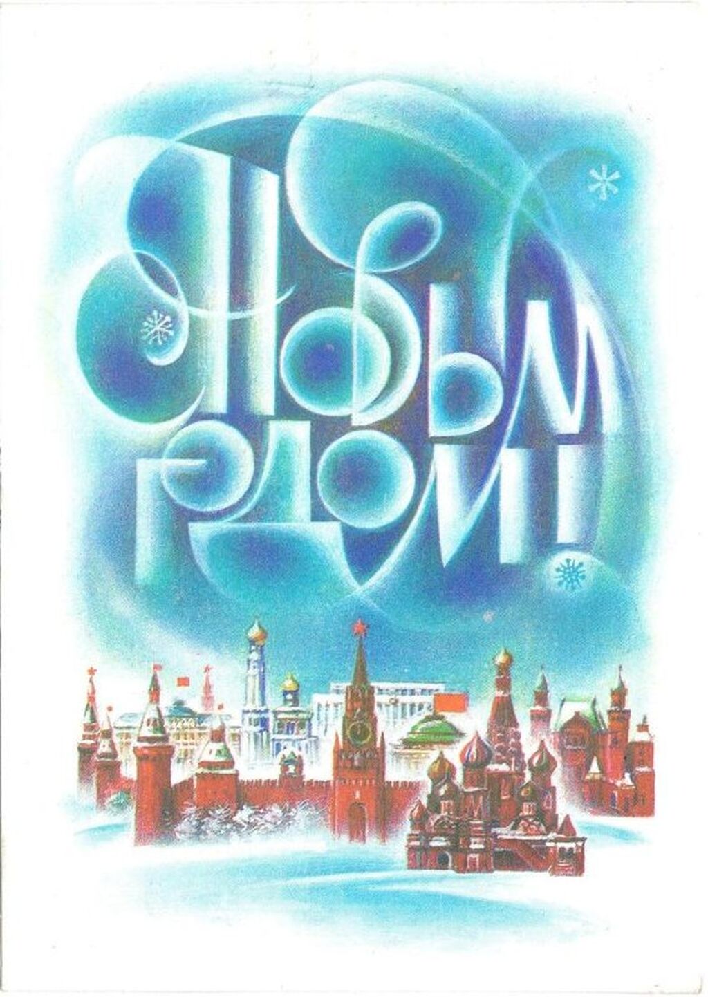 История новогодних открыток в СССР началась после периода забвения в 1950-е годы. После Октябрьской революции рождественская символика была запрещена, и выпуск открыток прекратился, а послевоенный период возродил традицию с помощью идеологически «правильных» сюжетов, таких как кремлевские башни, Дед Мороз, Снегурочка и космическая тематика. Массовый выпуск начался в 1953 году, став важной частью празднования, а расцвет пришелся на 1960-70-е, когда на открытках появились работы известных художников и спецэффекты, как тиснение.